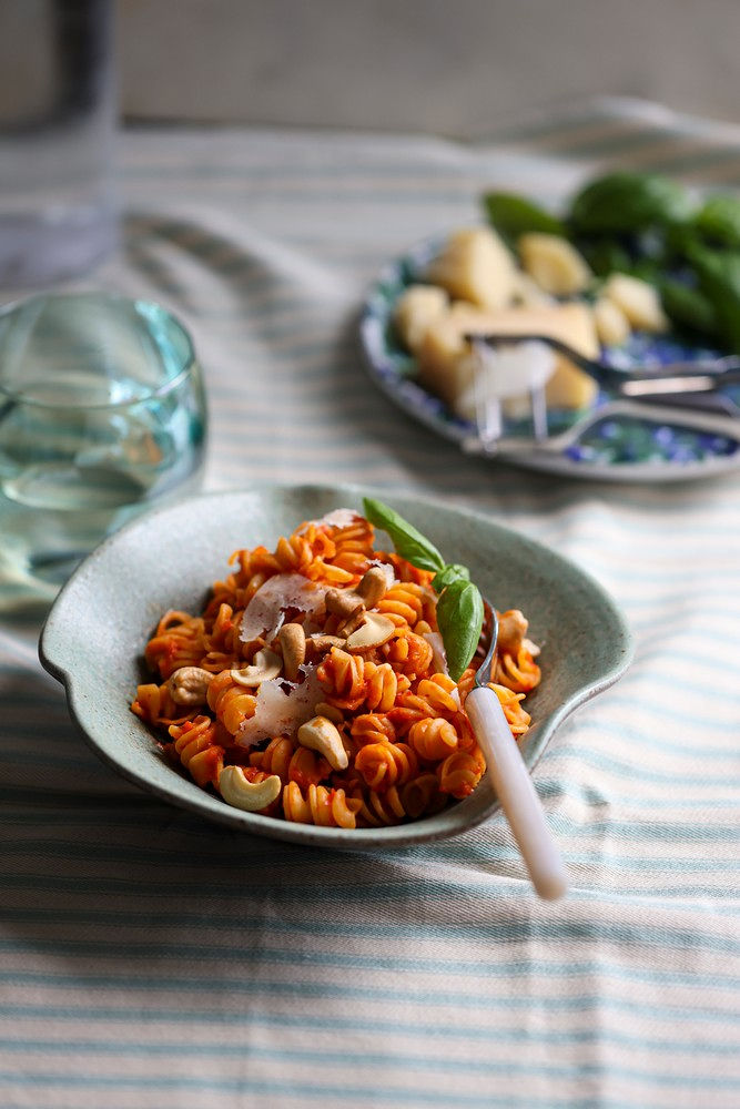 Visokoproteinska tjestenina s pestom od paprike, pecorina i indijskih oraščića